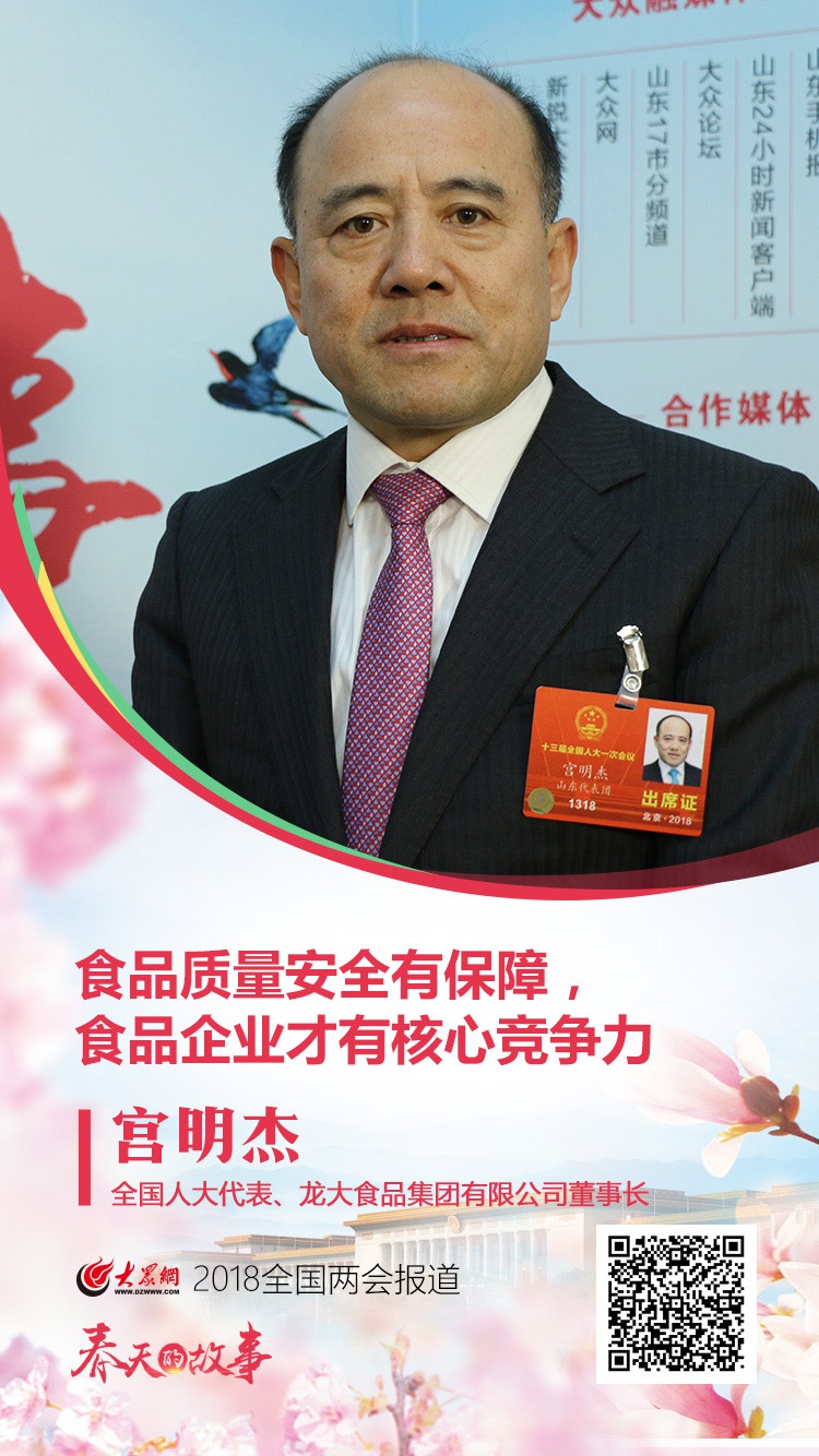 全國人大代表、龍大食品集團有限公司董事長宮明杰。