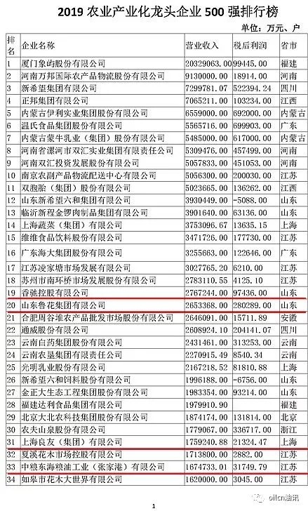2019年中央一號文件明確提出要“培育農業產業化龍頭企業和聯合體”,以肩負起推進農業農村現代化和鄉村振興的重要使命,上榜油企們將乘勢進入快速發展的新階段。(轉自油訊)