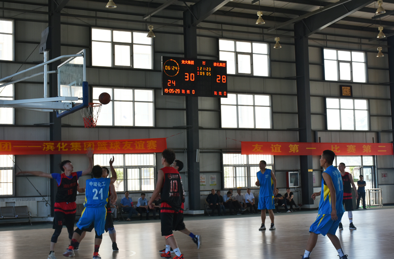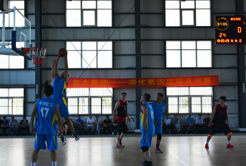529日,應龍大集團之邀,濱化集團副總經理許峰九、工會主席金建全率公司籃球隊一行赴萊,雙方開展了熱烈而友好的籃球友誼賽。賽前,龍大集團總經理張德潤致辭,表示“龍大集團與濱化集團是多年的合作伙伴和真摯的朋友,希望通過此次籃球友誼賽,能夠加深雙方的了解,在運動對抗中,增進彼此的感情,祝愿龍大集團與濱化集團友誼地久天長。”