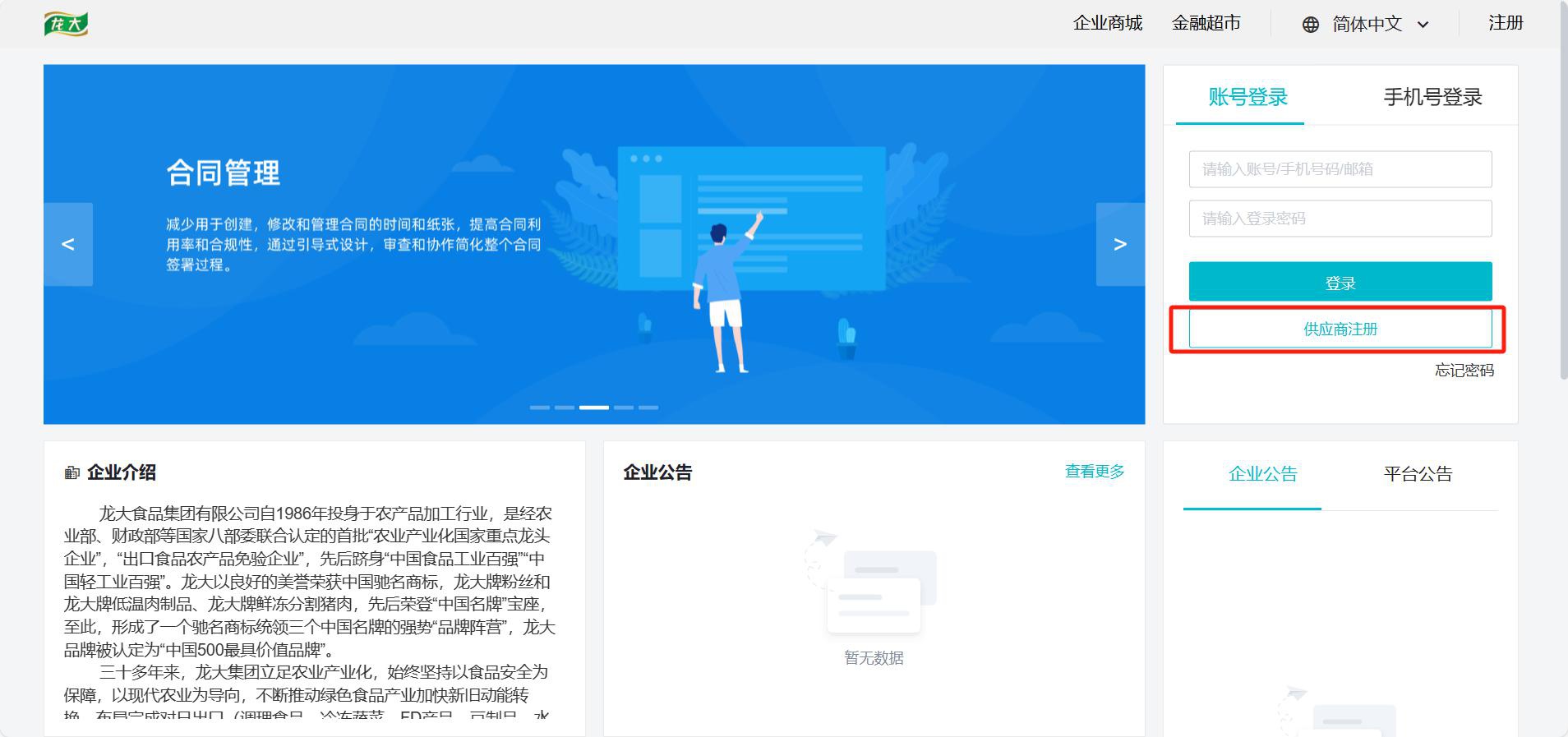 二、龍大集團(tuán)采購平臺(tái)注冊(cè)入口